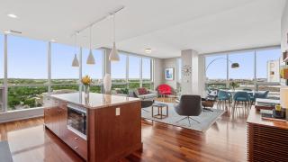 The perfect city home awaits on the 15th floor of Phoenix on the River, a highly desirable boutique building located in the historic St. Anthony Main neighborhood known for its walkability, riverfront access, parks, coffee shops and restaurants. This stunning SE corner condo, one of only four units on the floor, is awash with light thanks to two walls of floor to ceiling windows. The open floor plan is perfectly framed by views of the historic Pillsbury Flour sign and the lush treetops of the Marcy Holmes neighborhood. Beautiful cherry hardwood floors and fresh paint throughout provide warmth to the home’s modern finishes. The chef's kitchen includes a spacious island ideal for entertaining, stainless steel high end appliances, and walk-in pantry with plenty of storage. Tucked behind the living room and sharing a dual sided fireplace is the den, perfect for cozying up with a movie, or to utilize as an office.
