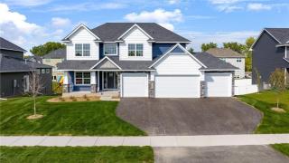 Stunning to-be-built two-story home by Eternity Homes LLC on a prime .35-acre eastern-facing corner lot—just one house off Prior Lake! Did we mention the views you will have from your bedrooms?! This highly sought-after Cape Cod floor plan offers 5 bedrooms, 5 bathrooms, and a fully finished walkout lower level. The main floor features a private office/den, spacious great room with a cozy stone-front gas fireplace and built-ins, a dining area with access to a future deck, and a gourmet kitchen with a tech center, walk-in pantry, center island with breakfast bar, and beautiful quartz countertops throughout. High-end appliances include a built-in oven and gas cooktop. The mudroom is equipped with a walk-in closet for everyday convenience. Upstairs, you’ll find four bedrooms and a flexible loft space—the primary bedroom with bathroom en-suite, another junior suite, and two bedrooms sharing a Jack & Jill bath. The luxurious primary suite boasts a large walk-in closet and a spa-like bath featuring a soaker tub, walk-in tiled shower, and dual quartz vanities—with a private door connecting directly to the upper-level laundry room. The fully finished walkout lower level includes a spacious family room complete with an electric fireplace and a stylish wet bar—perfect for entertaining. A 5th bedroom and ¾ bath complete this level, offering excellent guest or multi-generational living space. The oversized 4-car garage comes finished with insulated walls, insulated garage doors, and a garage heater for year-round comfort. Sod and professional landscaping included. Incredible location close to schools, parks, trails, restaurants, and just steps from Prior Lake—this is luxury lake-area living at its finest! Enjoy all that Prior Lake has to offer and make this house your home!