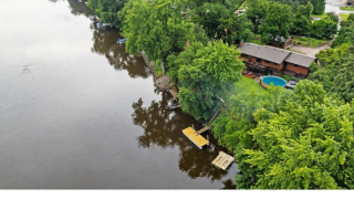 Luxury riverfront living! This private .66-acre retreat offers 125 feet of river frontage, breathtaking panoramic views, and direct access to boating, fishing, jet skiing, and unforgettable sunsets—plus a bass-fishing hotspot right in front of the property. Nestled at the end of a shared driveway and hidden from Riverdale Drive, the home offers the perfect balance of privacy and convenience. An outdoor paradise featuring two brand-new composite decks maximize outdoor living—a 20×10 main-level deck that connects to a 22×10 lower deck, plus a special swim deck right at the pools edge and hot tub to enjoy sunset views! Inside, the one-level home with a walk-out basement features four bedrooms, three bathrooms, an attached two-car garage, and a second two-stall garage with extra storage built in 2010. The kitchen, remodeled in 2018, showcases warm wood cabinetry, stainless steel appliances, granite countertops, and sweeping river views through large windows—perfect for enjoying the scenery while you cook or entertain. The sun-filled living room boasts vaulted ceilings with exposed beams, original hardwood floors, and a cozy fireplace framed by an expansive wall of windows overlooking the backyard and river. The recently remodeled lower level walks out to the lush yard and overlooks river views from the family room. Extensive updates include a full basement remodel in 2025, new carpet (2025), new boiler with zoned controls, AC on the main level (2025), new siding (2023), and a new roof (2020). The property has added features like a river-fed irrigation system, city sewer and water, outdoor motion lighting, and a 20×40 garden plot ready for your green thumb. Conveniently located near highway access, golf, parks, shopping, dining, and local events, this home combines seclusion with easy access to everything you need.