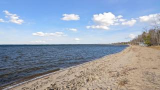 Lake life awaits on pristine Pelican Lake. A rare find on 7.8 acres with mature trees and 253 feet of sandy beach. Existing home is in good condition and could be enjoyed as-is, or temporarily while you build, or easily converted to a guest house or caretakers quarters. 3rd non-conforming bedroom possible in lower level. lower level is very livable and offers 1,000 sf of space. 30x40 pole barn with power is home for your toys and equipment. Quiet, tucked-away, and beautiful, this home is ready to enjoy immediately, and the incredible beach is just waiting for you to build your lakefront legacy.