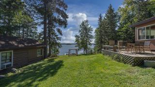 The cabins are true to their roots, built from original whole logs with wood floors and timeless character. Each has cold water and electricity. The largest cabin features a wide lake-facing porch, warm knotty pine interiors, wood floors, a kitchen area, refrigerator, sleeping space, and an expansive wraparound deck designed for relaxed gatherings or quiet mornings in the sun. Another cabin features vaulted wood ceilings and log walls, while another showcases knotty pine charm and its own porch. There’s a generous yard for outdoor games or lakeside lounging, plus a beach area for swimming and summer fun. A shed with large windows offers potential as a bunkhouse. A spacious pole barn is included and is equipped with hot water, a stove for cooking, two bathrooms with two separate showers and ample room for boats, vehicles, or outdoor gear. All together, the cabins and finished space in the pole barn offer a total of 4 bedrooms, 2 bathrooms, and 1,937 square feet of living space, providing a flexible setup for hosting family, friends, or simply enjoying a quiet retreat with room to spread out. As a bonus, Wabedo Lake connects to Little Boy Lake, giving you access to two lakes from one dock. This offers more to explore, whether you’re fishing, boating, or simply soaking in the landscape. Whether it’s the history in the log walls, the expanse of land, or the dual-lake access that draws you in, this property delivers a rare kind of escape, unpolished in the best way.