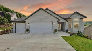The heart of the home continues downstairs to a fully finished walkout basement, complete with a cozy gas fireplace, a dedicated office space, and direct access to a private patio—perfect for soaking in the breathtaking bluff views year-round.