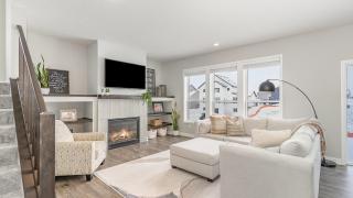 Why build? This beautiful open concept floorplan has much to offer with the main level flex room (office or playroom), a large LR with a gas FP flanked by built-in shelving, kitchen boasts a large center island with seating, SS appliances and tile backsplash and quartz countertops. The mud room, walk-in closet, walk-in pantry, half bath and access to the garage finish off this level. Upper level includes the primary bedroom and three add'l bedrooms, laundry room and a full hall bath. The vaulted primary bedroom has a custom closet system w/built-in dressers and more. The primary bath has two sinks, and a separate bathtub/shower. The lower level has a large FR w/space for a pool table (included), a 5th bedroom, 3/4 bath and a large utility/storage room. The sliding glass door leads to the concrete stamped patio. There is a tech package for media and surround sound. The garage is fully insulated and painted and has an epoxy floor.