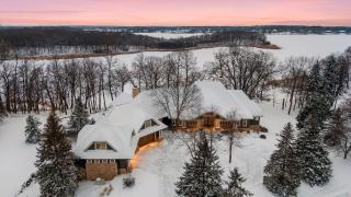 Set along the coveted west-facing shoreline of Maxwell Bay, this remarkable estate is a private lakeside retreat, offering exceptional privacy and sweeping sunset views. Spanning 2.19 acres with more than 300 feet of untouched shoreline, the property overlooks the 70-acre Noerenberg Gardens-ensuring unspoiled, wooded vistas across the bay. Inside, soaring ceilings and expansive walls of glass frame tranquil water views from nearly every room. The open-concept main level is designed for effortless living and entertaining, featuring a spacious great room and a gourmet kitchen that flows into a sun-drenched family room. Beautifully refinished hardwood floors and fresh paint throughout. The main floor primary suite is a private retreat, complete with its own lakeside deck, an expansive walk-in closet, and a luxurious marble ensuite bath with a steam shower and soaking tub. Perfect for year-round entertaining, the four-season porch offers heated floors, a fireplace, and indoor grill. The walk-out lower level includes a full bar, two ensuite guest bedrooms, a game room, home theater, office, and an additional heated 2-car garage with expansive storage. Spacious guest or nanny quarters offers great separation from the rest of the home. Ideally located - just 4 minutes to award-winning Orono Schools and 6 minutes to downtown Wayzata - this extraordinary home is a rare opportunity for refined lakeside living.