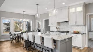 Welcome to this stunning custom-built walkout rambler, close to Rush Creek Golf Course! Designed w/an open & spacious layout, this home is full of premium features & thoughtful upgrades. Upon arrival you'll appreciate the impeccable craftsmanship, including Andersen windows, LP Smart Siding, & an oversized 3-car garage w/storage loft. The custom-designed kitchen features a large island, elegant wood floors, upgraded KitchenAid appliances, 54” upper cabinetry, & stylish lighting fixtures. The Great Room is an entertainer’s delight, featuring a modern fireplace framed by custom cabinetry & vaulted ceilings accented w/crown molding. You'll enjoy relaxing or entertaining on the fabulous 3-season porch. Retreat to the luxurious owner’s suite, where you’ll find a spa-like oasis w/a freestanding soaking tub, a walk-in shower, heated floors, & spacious walk-in closet complete w/a convenient washer & dryer. The fully finished lower level extends your living space, featuring a family room, 3 bedrooms, a wet bar, & more. This home truly checks all the boxes for comfort, style, & functionality!