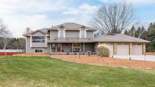 Welcome to 10357 117th St N in Grant - the one your acreage buyers have been waiting for. Set on a rare and serene 10-acre property, this custom-built, single-owner home offers the perfect blend of privacy, space, and natural beauty. Enjoy abundant wildlife, peaceful wooded surroundings, and your own walking path that winds through the trees. The house features an attached 3 stall garage with ample workshop space, 3 spacious bedrooms and 4 bathrooms, including a primary suite with a walk-in closet and private ensuite. Natural woodwork, a large kitchen with a center island, and 3 fireplaces create warm, inviting spaces ideal for everyday living and entertaining. The sunken lower-level living room centers on a cozy fireplace, and sliding doors walk out to one of two private patios. The additional basement family room offers flexibility: use it as a playroom, billiards room, office, or convert it into a 4th bedroom. Step outside to the expansive deck overlooking the tranquil landscape. The patios flanking either side of the deck provide perfect setups for a hot tub, grilling, or gathering with friends. The huge pole barn is a standout feature—ideal for boat storage, equipment, or all your recreational toys. Newer Renewal By Andersen windows throughout. Newer roof, furnace and A/C. All of this, just minutes from Stillwater, Mahtomedi, and top-rated schools. New Liberty Academy Private School is under construction nearby. Acreage, privacy, and a true connection to nature - this is the lifestyle your buyers have been searching for.
