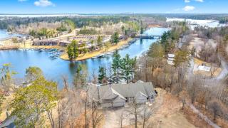EXCLUSIVE & PRIVATE walkout townhome nestled on 3 wooded acres with 227ft of shared lakeshore on Upper Gull Lake. This unique, custom built one level TH has been meticulously maintained and sits above the glimmering lake, among the towering pines with panoramic scenic views! Plus it includes a dock, boat slip and lift for a 25' pontoon! After a fun filled day on the water come back to your warm and welcoming retreat. You'll love the open floor plan with soaring vaulted ceilings, lakeside floor to ceiling glass that captures the beauty of the outdoors, 2 stone gas fireplaces, in-floor heat, wet bar, carved wood floors, and reclaimed wood walls for that "up north" feel. The main floor consists of a cozy and comfortable living & dining space, bright & airy eat-in kitchen with concrete countertops and brand new appliances, primary suite with updated 3/4 bath, an additional bedroom, laundry closet, and full bath. Discover the expansive lower level with grand family room featuring a brand new wet bar, new construction 3/4 tiled bath with walk-in shower, and 2 spacious bedrooms with pine T&G. Relax or entertain in the 3 season porch with adjacent sun filled deck - both overlook the picturesque lot and sparkling water! Take the landscaped path that leads down to the water's edge for a quiet evening by the campfire. The property also includes a BRAND NEW 1,200 sqft heated and insulated 4 car garage with finished living space above - a perfect guest suite with 1 bedroom, 3/4 bath & breakfast bar. The garage features a 10ft door, floor drain, running water, tankless water heater, mini split. NEW townhome furnace/AC, tankless water heater 2023. New rip rap shoreline and landscaping. Ultra convenient location to downtown Nisswa, within walking distance to Zorbaz and Bar Harbor, or take advantage of the new multi-use Gull Lake Trail system. Experience easy lakefront living with this turnkey townhome! FUN, CRYSTAL CLEAN, & MOVE-IN READY!