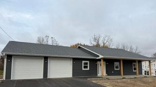 This quality-built slab-on-grade home offers 1,656 sq ft of single-level living with 3 bedrooms, 2 bathrooms, and an oversized 936 sq ft 2-car garage. The open-concept layout features 9 ft ceilings, luxury LVP flooring, solid wood doors, and custom trim throughout. The kitchen includes quartz countertops, an island, custom cabinetry, and stainless steel appliances. The private primary suite offers a walk-in closet and a spacious bath with double vanity and custom tile walk-in shower. Additional features include a large laundry/mud room, spray foam insulation with blown-in attic, forced air heating (in-floor heat plumbing ready—boiler optional), and energy-efficient construction. Exterior highlights include vinyl siding, cedar-wrapped posts, covered front porch, poured concrete back patio, paved driveway, and completed landscaping. Located on a quarter-acre lot in a quiet Clear Lake neighborhood, this home is ideal for anyone seeking modern comfort with low-maintenance living.