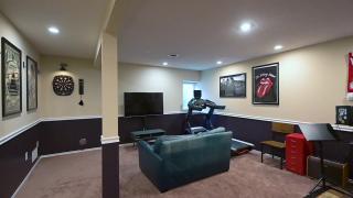 The main level includes a spacious family room with built-ins and a cozy gas fireplace, plus a versatile bedroom with French doors and a nearby ¾ bath—perfect for an office or guest space. Upstairs are three bedrooms, including the owner’s suite with a private bath featuring heated floors, along with an additional full bath. The lower level offers a large fifth bedroom or flexible recreation space. Complete with a new water heater, new paint throughout, and 3-stall garage.