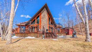 BIG SANDY LAKE-Year round home. This 3 bedroom 3 bath home faces south looking right down Bellhorn Bay for an awesome view. Easy access with the gradual slope on the west side of the property to the dock and shoreline. Very sandy shoreline and lake bottom. The home was built in 2013 and has a very warm up north feel to it with the tongue & groove pine in the main living areas up and down stairs. The kitchen has stainless appliances, a gas cook top, a center island and hickory cabinets. Oak hardwood floors in the main floor living area. Vaulted ceiling in the Livingroom. Six panel oak doors. The main bedroom has it's own private full bath. All 3 bedrooms are on the main level along with the laundry closet. The lower level has many closets and storage rooms. The family room is down stairs and has a media center, and a gaming area which is all included. Also in the family room there is a bar area. Off the family room sits a bonus room that is used for crafting. Gas fireplace in the family room and a wood burning fireplace in the living room. Large wrap around deck with a pergola and safety railing. 24'x24' detached garage and 3 storage sheds. End of road privacy. Sprinkler system, the Floe dock and Floe lift are included. 2012 Premier Gemini w/2017 115 hp Merc motor included. The home is being sold as a turn key.