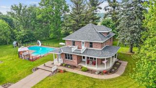 Timeless 1915 Farmhouse on 23+ Acres w/pool and Scenic Wildlife Views. Welcome to your dream country retreat-this picturesque 1915 farmhouse sits proudly on 23+ sprawling acres of peaceful countryside. Thoughtfully maintained, this home offers the perfect blend of historic charm and everyday comfort. Step outside and take in the the beauty of open pastures, mature trees, ponds/wetlands, and an abundance of wildlife. Cool off on warm summer days in the private in-ground pool, or unwind on the wraparound porch as the sun sets. The property includes several outbuildings for animals, storage or hobbies, with room to roam, garden or simply breathe. Whether you're looking for a quiet escape, hobby farm, or a place to connect w/nature, this one-of-a-kind property delivers! This property has an abundance of storage for RV's, boats, snowmobiles and all of your toys-trails nearby!