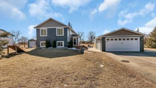 This move-in ready 4-bedroom, 2 full-bathroom home features an open floor plan with vaulted ceilings and numerous new or recently updated features inside and out. The kitchen boasts granite countertops and stainless steel appliances, with real hardwood flooring throughout the upstairs. Recent updates include LVP flooring in the bathrooms and entryway, a remodeled downstairs bathroom, and newer carpet. The exterior has been completely updated with a new roof, siding, and doors, plus an updated shed. Enjoy the insulated garage with a gas heater, an oversized patio with a privacy fence wired for a hot tub, a deck, and a newer central air unit and water heater. Situated on a level lot with great outdoor space, and just a short walk to the Royalton splash pad. Conveniently located, this home is a rare find in a low-inventory market!