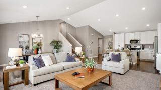 Inside, enjoy the efficient and popular Cameron layout, designed to maximize every square foot with no wasted space. The main floor features an open layout with vaulted ceilings, a main floor office with French doors, and a stunning kitchen with white enameled cabinets, a large island, granite countertops, and stainless steel appliances, including a gas range and microwave which vents outside! Upstairs, you’ll find 3 bedrooms and 2 bathrooms. The finished walkout lower level includes a 4th bedroom, a 3rd bathroom, a spacious family room, and a HUGE crawl space for storage. Additional highlights include updated light fixtures, smart lights and switches, a covered front porch, and 3 car garage. No need to wait to build—move right in and start living your dream!