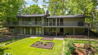 Mid-Century Modern Elegance on Basset Creek Timeless design and natural beauty in this meticulously curated walkout rambler nestled along the peaceful banks of Bassett Creek. Inspired by classic mid-century architecture, this home blends clean lines, expansive windows/sliding doors, vaulted ceilings, and thoughtful updates to create a warm, modern retreat. With nine sliding glass doors and a seamless open floor plan, the indoor-outdoor connection is unmatched. Light pours in through multiple skylights and floor-to-ceiling doors, framing serene views of the wooded lot and creek beyond. The sleek kitchen is a chef’s dream—featuring corian countertops, handcrafted cabinetry, and top-tier stainless steel appliances, including a Sub-Zero refrigerator. Accenting the MCM style is a grill cooktop in the kitchen that is vented out for indoor grilling. Throughout the home, you'll find walnut paneled walls and beams, and two cozy fireplaces, offering both style and comfort. Enjoy both formal and informal dining spaces, updated mechanicals, a garden room, , wood shop, and exceptional outdoor living with a full-width deck and large patio overlooking lush perennial gardens and a storybook woodland setting. Located in a charming, sought-after neighborhood near parks, trails, shopping, and dining, this one-of-a-kind home offers mid-century magic with modern convenience—and easy access to everything you need.