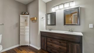 This is an end unit — more natural light, only one shared wall, and a patio that actually feels like yours. The family room opens up with vaulted ceilings and a gas fireplace that earns its keep from October through April. The loft is real flex space — home office, gym, guest setup, whatever you need it to be right now. The primary suite runs walk-through closet straight into the bathroom. The second bedroom has its own walk-in. Two-car garage and a new washer and dryer that stay with the home.