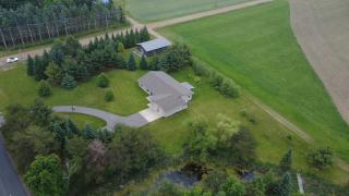 This 3BR patio home offers a wonderful blend of rural tranquility and convenient access, situated on four acres with a pond and a substantial 30x48 pole shed equipped with 3-phase power. A peaceful country setting while being only about half a mile from Highway 10, making your commute a breeze. The home itself is thoughtfully designed with energy efficiency in mind, featuring in-floor geothermal heating and Enercept panels. These Enercept panels are known for their strength, reportedly 2.5 times stronger than conventional stick-built construction. The result is remarkably low annual heating and cooling costs, totaling under $3,000.00. Inside, you'll find 3 generously sized bedrooms, a striking vaulted ceiling in the open-concept living, dining, and kitchen area, a charming built-in bookcase and bay window in the main living space. The home also offers a versatile den that could serve as a 3rd BR, along with ample storage space and a convenient walk-in pantry. Patio door from kitchen /dining area to the covered back patio where you can relax and appreciate the serene country views.