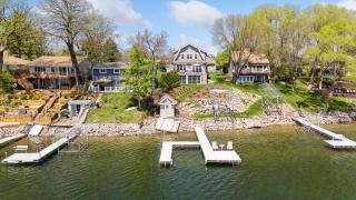 Nestled along the serene shores of highly coveted Lower Prior Lake, this exceptional Cape Cod-style residence seamlessly blends timeless elegance with modern luxury. Boasting expansive southern-facing water views, the home captures breathtaking sunrises and sunsets. Step inside to discover rich walnut flooring and impeccable craftsmanship throughout, where every detail reflects thoughtful design. The heart of the home is an expansive great room, anchored by a cozy fireplace and floor-to-ceiling windows that frame the stunning lakefront setting. The chef’s kitchen is a culinary dream, featuring custom cabinetry, an oversized island perfect for entertaining, and top-of-the-line appliances, including a Sub-Zero refrigerator/freezer and Thermador suite. Calcutta and Carrara marble surfaces are found throughout the home, complemented by premium Rohl and Perrin & Rowe fixtures. Upstairs, the spa-like primary suite offers a true retreat, with a luxurious en-suite bath, oversized soaking tub, and tranquil lake views. Additional bedrooms and guest accommodations provide generous space for family and visitors. For remote work or guests, a 632-square-foot private suite above the garage includes a bathroom, kitchenette with built-in beverage refrigerator, sleeping area, and its own mini-split HVAC system—ideal for comfort and productivity, all with serene views. A lakeside boathouse ensures seamless access to water activities—from boating and kayaking to simply enjoying the lakefront lifestyle. Designed for entertaining, the home features multiple indoor and outdoor gathering spaces, including a maintenance-free Brazilian cherry wood deck and a stamped concrete patio. Every element of this property has been carefully curated to offer warmth, sophistication, and effortless lakeside living. All this—just 30 minutes from downtown Minneapolis and 25 minutes from MSP Airport—makes this extraordinary home a true one-of-a-kind opportunity on a full recreational lake.