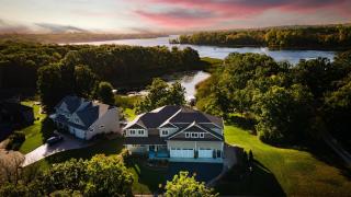 Stunning 2-story on Lake Marion blends luxury, efficiency, and smart design. Enjoy breathtaking lake views from the great room with 19’ vaulted ceilings, formal office, and primary suite. Hickory floors flow through the open main level with a high-end kitchen, dining, and hearth rooms, plus a screened porch for year-round enjoyment. Upper level features a lake-view primary suite with dual-head shower, Jack-and-Jill bedrooms, and a flex suite with private entrance. Walkout lower level offers a wet bar, game area, exercise room, and sauna-ready wellness space. Nestled on a private cul-de-sac with walking paths, private bay access, and close to top schools and highways.