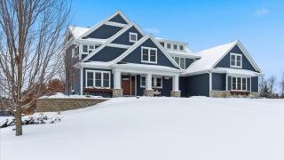 Nestled on a private lake, this stunning 4-bedroom, 4-bath home offers the perfect blend of luxury, comfort, and breathtaking views. Every detail has been thoughtfully designed with high-end finishes and exceptional craftsmanship throughout. Step through the grand front door and into the impressive living room, featuring coffered ceilings, a cozy gas fireplace, and panoramic views of the lake. Adjacent to the living room is a show-stopping kitchen complete with a massive center island topped with granite countertops, stainless steel appliances including a double oven and cooktop with overhead exhaust, and an expansive butler’s pantry offering ample storage and prep space. Just off the kitchen, the dining room provides yet another incredible lake view, while the adjoining three-season porch—with its own fireplace—creates the perfect setting to relax or entertain year-round. A spacious mudroom connects to the finished and heated 4-car garage, providing convenience and functionality. An elegant office and a stylish half bath complete the main level. Upstairs, the luxurious primary suite is a true retreat featuring a spa-like bathroom with a soaking tub overlooking the lake and a walk-in shower. Another bedroom includes a private bathroom, while two additional bedrooms share a beautifully designed Jack and Jill bath. The lower level is unfinished but thoughtfully planned, with rough-ins for an additional bathroom and walkout access to the scenic patio. Outside, you’ll find a backyard oasis—complete with an in-ground pool, lush landscaping, and serene views that make every day feel like a getaway. From the craftsmanship to the setting, this remarkable property delivers the ultimate lakefront living experience.