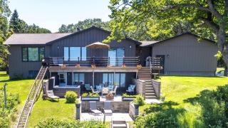 NEW ROOF IS COMPLETE! Otter Tail Lake 4 bedroom/3 bathroom beauty has been recently renovated and will not disappoint. Stunning sunset views from the coveted east side on an expansive 130' of pristine sand shoreline. Worried about the few steps to the lake? No need to be-there is a tram to transport you and your guests down to the water. Exterior spotlight makes it useable even in the evening. Attached two car insulated garage. Main floor includes an open kitchen great for gathering with 4'x8' waterfall end Brazilian granite island, crystal & capiz shell chandeliers, custom cabinets w/designer lighting, a separate wet bar with reverse osmosis drinking water faucet, stainless steel appliances, recessed lighting with dimmers throughout. New maintenance free deck greatly extends and enhances your entertaining and gathering space. Main floor primary suite includes expansive lake views, walk in closet, custom tile shower, granite vanity & travertine floor. Beautiful guest bath with oversized Kohler tub and 2 additional bedrooms are also on the main level. From the lower level walk outside to two patios overlooking Minnesota's tenth largest lake. Come back in to the open concept family room that is filled with natural light and an additional full bathroom and bedroom (non-egress,) storage room with utility sink and floor drain and an extra large bonus room with a wall of storage shelves that is currently being used as a billiard room and workout area. All new flooring is throughout home including wide plank luxury oak flooring on the main level, COREtec vinyl plank flooring on the lower level. New triple pane & double pane windows and doors 2023/2024. Main floor composite deck with steel cable railings new in 2023. Home has a designated generator panel with plug in near front door. New furnace and A/C in 2020. Septic new 2021. Brand new 8 x 10' storage shed with overhead door and electric installed September 2024. Dock included. Hot tub negotiable.