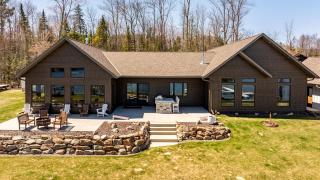 This stunning Pokegama Lake home is the kind of place that makes you want to drop everything and move to the lake. With high-end finishes, incredible views, level shoreline, a sauna/guest house, and a bonus garage—this is the kind of lake home people wait years to find. This 3+ bedroom, 4-bath home was thoughtfully designed with attention to every detail during the building process. Sip your morning coffee on the lakeside patio as the sun rises, and spend your afternoons playing games and grilling burgers on the built-in outdoor grill. The home features a one-of-a-kind custom design built in 2020, offering many exceptional features—including a spacious bonus room upstairs with a private bath, ideal for a family room or guest suite when hosting friends and family. A tar driveway with a concrete pad adds a clean, finished look, and there’s no shortage of storage throughout the home and garages. Inside, you'll also find a private office just off the kitchen and a generous walk-in pantry. The main living room features a beautiful stone fireplace and is framed by wall-to-wall windows overlooking the lake—an incredible focal point that brings the outdoors in. The primary suite is a true retreat, offering tall windows with panoramic lake views, a private gas fireplace, a luxurious bathroom with a heated shower/tub wet room, and a walk-in closet with some of the best views on the property.