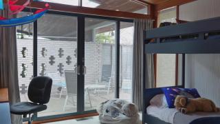Originally built in 1958 by the Aluminum Company of America, this remarkable residence was created as a forward-thinking prototype celebrating innovative materials and open-concept design. Rich redwood walls and ceilings are beautifully paired with vibrant textured aluminum panels, while two sides of the home are wrapped in expansive sliding glass doors and floor-to-ceiling windows that fill the interior with natural light. The result is a striking mid-century modern retreat featuring a dramatic fireplace, generous entertaining spaces, an expansive deck, breezeway connection, and a private courtyard. The oversized, fully fenced yard adds both privacy and flexibility for outdoor living, pets, or gardening while complementing the home’s classic indoor-outdoor design. Designed by renowned modernist architect Charles M. Goodman - whose work helped define the era’s clean lines and harmonious connection between architecture and nature - this home has been thoughtfully restored for modern living. A truly rare opportunity to visit one of just 24 Alcoa “Care-Free” homes ever constructed!