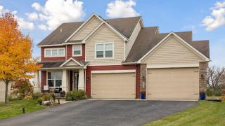 Discover this exceptional two story home, perfectly situated on a quiet cul-de-sac along the 18th fairway of Boulder Pointe Golf Course. Step into the spacious and inviting living room, featuring custom-built cabinetry, a cozy gas fireplace, and expansive windows that fill the space with natural light. The kitchen showcases granite countertops, a subway tile backsplash, and stainless steel appliances. Step outside to the deck with maintenance-free railings—ideal for relaxing or entertaining while taking in the scenic golf course views. Upstairs, you’ll find four bedrooms, including a luxurious primary suite with vaulted ceilings, dual sinks, and a separate soaking tub and shower. The finished lower level offers a large family room with built-ins, a wet bar complete with a dishwasher and wine fridge, and walkout access to a spacious, level backyard and patio. The four-car insulated and heated garage is a standout featuring in-floor drains, vaulted ceilings, and a 200-foot mezzanine for ample storage. Designed by the original owner to accommodate vehicles, lifts, and hoists, this space is both functional and impressive. This neighborhood has both New Prague and Lakeville bus routes. Don't miss out on this beautiful home. Schedule a showing today!