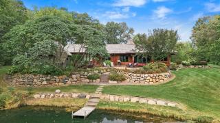 Private paradise on 40 acres with outbuildings & four ponds. Beautiful custom built home features open concept on main level, high end finishes, hardwood floors, huge owner's suite with fireplace, walk in closet & private owner's bath with heated floors & yard irrigation. Lower level creates a perfect in-law suite with a 4th bedroom, family room with fireplace, wet bar and 3/4 bathroom. The backyard is an oasis overlooking a serene pond with water fountain, screened gazebo & patio. Huge outbuilding with workshop & stairs to top floor lookout area. Property also includes a little cabin in the woods, apple orchard & area to shoot sporting clays. Part of the property for agricultural lease. Come see the woodducks, turkeys, deer and other wildlife. 14.7 acres is tillable & rents for $2,800/year. Really a nature lovers dream!