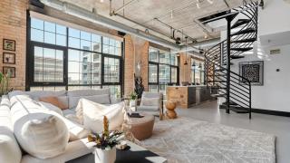 Discover luxury living at its finest at the North Loop's renowned Bookmen Lofts with this stunning penthouse, unit #511. Enjoy panoramic city views in three directions, showcasing the beauty of downtown Minneapolis. This 1,643-square-foot residence offers 2 bedrooms and 2 bathrooms, featuring a modern 14-foot kitchen island that seamlessly integrates with the living space, ideal for both everyday living and entertaining. The residence extends outdoors to a generous 450-square-foot rooftop patio, perfect for relaxation and gatherings. Practicality meets luxury with 2 underground parking stalls, including one with EV connectivity, providing convenience for modern lifestyles. Located in the heart of the North Loop, this home offers easy access to the area's dining, shopping, and cultural attractions, making it a perfect blend of comfort and vibrant city life.