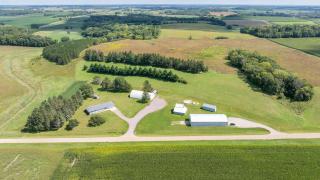 The perfect blend of country living and space with this 4 bedroom, 3 bathroom spacious rambler set on a beautiful 18.67 acre parcel. The home features hardwood floors, stainless steel appliances, radiant heat, and forced-air A/C for year-round comfort. With 4 bedrooms all on one level, the layout is both functional and family-friendly. An oversized, finished two-stall garage with a floor drain adds convenience, while the property includes impressive outbuildings: a 44x100 shed, 40x80 quonset shed, and a 12x40 shed, offering endless storage or hobby space. The home is solid and well cared for & offers an excellent opportunity to update and bring it to today’s modern style. With open acreage and room to grow, this property is ideal for those craving country living.
