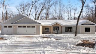 Stunning one-level new construction home nestled next to Pillsbury State Forest on a picturesque 2+ wooded acre lot. This beautifully designed modern home offers serene privacy and high-end comforts, featuring radiant in-floor heat and full A/C, European white oak flooring, and Marvin casement windows for timeless elegance and energy efficiency. Designed for both style and function, the home boasts LP SmartSide siding, 9 ft ceilings, and insulated interior walls for noise reduction and enhanced heating and cooling efficiency. The spacious 3-car heated garage includes a floor drain and attic storage, while an on-demand hot water heater/boiler combo ensures efficiency and convenience. The heart of the home is its open-concept living space, highlighted by a Kozy Heat gas fireplace, custom soft-close cabinetry, and level III granite countertops throughout. The walk-in pantry, oversized washer and dryer, and Bayer Built solid core doors add to the home’s thoughtful design. Relax in the large tiled shower with a custom glass door or unwind in the Kohler soaker tub after a day of outdoor adventure. Outdoor living is just as impressive with a 240 ft² screened-in porch, perfect for al fresco evenings. The exterior hot/cold hose bib adds convenience for all seasons. Located near Green Bass Lake and an abundance of activities, including horseback riding, hiking, and snowmobile trails, this home is a nature lover’s dream. Experience the best of modern living in a peaceful, scenic setting—schedule your private showing today!
