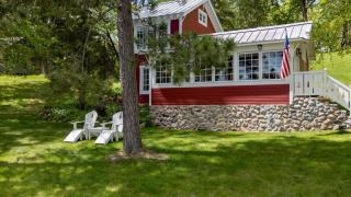 "Wabedo Lake Masterpiece:" created by the current Owners of over 20 years. During the reconstruction in 2008, the newspapers removed from the walls were from 1913..! What is viewed here today, on this beautiful Lakeshore Tract, is the culmination of 2 Artists, with a passion and a vision to bring the best from an earlier period forward to create simply one of the most alluring, quintessential properties, I have ever seen, in my 40 year Real Estate Career. A Fieldstone foundation wraps around the front of the cottage, with the stone steps leading you into the 4 season porch where you are drawn in over the 100 year old reclaimed Douglas Fir, with square nails, that further extends into the Kitchen, Dining, Living and Bedroom Areas which is accented by the authentic Fieldstone Wood Burning Fireplace. The vaulted ceiling is paneled with reclaimed old growth 100 year old Douglas Fir from a railroad Trestle over the Great Salt Lake in Utah. Kitchen features: a vintage rounded top Frigidaire Refrigerator, a salvaged vintage white porcelain Farm sink, Jurra green Limestone counter tops from Germany, the Miele gas cook top, microwave and a Kitchen Aid Oven, all fit perfectly into the decor. The Lakeside Bedroom features those same Doug Fir floors plus reclaimed Knotty Pine Paneling from a Granary in Duluth. The full bath features real rock flooring, a vintage Claw foot Cast Iron "Soaker tub" and those same Jurra Limestone counter tops. A spacious 12x22 vaulted loft, or Dorm Room upstairs, features Knotty Pine Ceilings, Pine Floors, Log Purlins, and is currently used as the main Bedroom/Sitting area, but would suit well as a dorm room for kids or guests. Adding a bunk bed there or even two, would allow the place to sleep at least 9 or 10, comfortably. Outdoors: "Park Like" grounds with natural Perennial Flower Gardens surrounding the Cottage, (Where the Butterfly's, Bee's and Hummingbird's are all having a love affair!) The Original Boat House is 10x20, has a Beer/Pop/Bait Fridge plus ample storage for just about any Fishing or Recreational water activity equipment. Swing the double doors open, set a chair down and you won't feel like ever leaving. 75 feet of wonderful hard sandy swimming awaits all the kids. The original Model "T" Garage is 10x18, has a work bench and adequately serves as the yard tools or equipment storage. Simply put; a "Timeless" Lake Cottage like none other.