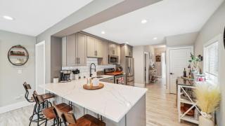 This beautifully renovated 2-story home offers 5 bedrooms, 2 full bathrooms, large laundry room with shelving and all main-level living, seamlessly blending modern upgrades with timeless charm in the heart of Northeast Minneapolis. Designed for both style and functionality, the gourmet kitchen features Moen faucets, quartz countertops, a large island, and a custom Kraus kitchen sink. Enjoy quality stainless steel appliances and elegant shaker cabinets with soft-close functionality. Throughout the home, you'll find broad trim, 5-panel doors with premium hardware, knockdown ceilings, and luxury vinyl plank flooring. Abundant recessed lighting ensures every space feels bright and inviting. Major updates provide long-term peace of mind, including plumbing and electrical (2019), siding (2015), a new roof (2016), all new HVAC in (2019) including AC, furnace, and two/dual water heaters. The spacious 34' x 29' fully sheetrocked garage boasts industrial new-age garage doors and offers ample storage and parking. Step outside to fresh landscaping and a charming back porch with large paver patio and outdoor lighting, perfect for entertaining while soaking in breathtaking views of the Minneapolis skyline. Don't miss out on this exceptional home—schedule your showing today!