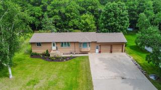 This charming, fully remodeled rambler offers 4 bedrooms and 2 bathrooms and is truly move-in ready! The upper level features an inviting open floor plan with soaring vaulted ceilings, creating a spacious and airy atmosphere. The beautifully updated kitchen includes sleek black stainless-steel appliances, new cabinetry, counters, tiled backsplash, and a built-in dining table that comfortably seats six or more. The adjoining dining and living areas are perfect for entertaining, enhanced by updated lighting and ceiling fans. A fresh mudroom just off the garage adds convenience with built-in storage, a spot for shoes, and a decorative barn door. Step outside to a large deck overlooking a private backyard filled with mature trees, a fire pit, and plenty of space for outdoor fun and relaxation. Downstairs, the fully finished lower level includes two additional bedrooms, a second bathroom, a cozy family room, and a second kitchen with an adjoining dining area—ideal for an exercise room, game room, or even as a separate living space. With its own entrance from the garage and full kitchen setup, this level offers excellent rental income potential. Additional highlights include luxury vinyl flooring, new carpet throughout the basement, updated lighting, and fresh interior paint. Ideally located near town, a park, Le Homme Dieu Beach, and scenic biking trails, this home is a great value and ready to enjoy!