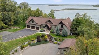Discover an exceptional Gull Lake estate, masterfully set on 1.9 acres, spacious parking, and 200 feet of pristine shoreline set high on the hill with a view you must experience. Recently renovated to perfection, this 6,300-square-foot architectural residence blends timeless craftsmanship with modern elegance. The home showcases white oak flooring, Cambria countertops, and a gourmet kitchen designed for the discerning chef. Soaring cathedral ceilings, and two impressive brick fireplaces create a warm and inviting atmosphere, floor-to-ceiling windows allowing natural sunlight to brighten your day, while a freshly painted exterior enhances its striking curb appeal. With five spacious bedrooms and five baths, including a serene primary suite with spa-inspired amenities, every detail has been thoughtfully curated. The walkout lower level offers second kitchen, guest suite with full bath, screened porch, and workshop. You will love the peace of mind having a whole home generator and attached oversized 3 car garage and detached 2 car garage for extra storage for all the lake toys. Close to championship golf, fine dining, trails and everything the lakes area has to offer.