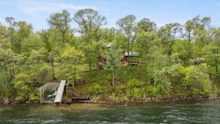 The Lodge is a stunning space for entertaining or relaxing, complete with a high-end kitchen featuring Wolf appliances, a massive stone wood burning-fireplace, a spacious open-concept layout, a game room area, and an upper-level loft-style bedroom. The property also includes three full kitchens, three bathrooms, a large 3-season porch, a new lakeside deck, brand new windows, a new Navien on-demand water heater, new water heater in the lodge and metal roofs. Brand new large lakeside windows.
