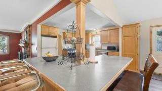 Step inside to an open, inviting layout. The living room floors are beautiful oak hardwood, and the room is centered around the brick wood-burning fireplace. The kitchen has brand new laminate flooring. The abundant cabinetry and huge pantry offer great storage, and the large island is perfect for meal prep or entertaining.
