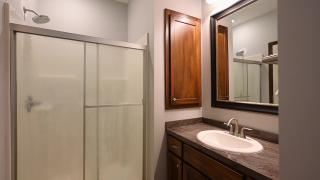 The finished lower level continues the quality of the main floor with 9-foot ceilings that create an open, inviting atmosphere. Large windows and a 9 ft sliding glass door bring in natural light, making the space feel bright and comfortable. A spacious gathering area offers flexibility for recreation or entertainment, while additional rooms adapt easily to changing needs. Dedicated storage areas ensure belongings stay organized without compromising finished space. The thoughtful ceiling height and layout make this level feel integrated rather than secondary.