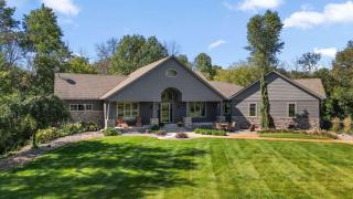 “Get away from it all”…every time you come home! This beautifully renovated estate sited on 2.6 idyllic acres offers you just that – the peace, privacy, and thoughtful design that feel exceptional. Entering the home is uplifting. Vaulted ceilings and abundant light greet you, with walls of windows that perfectly frame the views of the lovely pond and creek, variety of hardwood trees and diverse wildlife. Open main floor living anchored at one end by the handsome stacked-stone fireplace, at the other with one of the most impressive kitchens you’ve ever seen. A “chef’s kitchen” is an understatement, complete with Thermador commercial range and exhaust hood, Sub-Zero fridge, walk-in pantry, wine fridge, floating shelving, and palatial-sized quartz island. Casual and formal dining options make this the perfect home for the holidays. The main floor continues with a primary bedroom with spa-like bathroom, walk-in shower, tub and massive walk-in closet. Second bedroom with attached full bath or can serve as office. Beautifully refinished hardwood floors. Main floor laundry makes this truly one level living at its finest. Low-maintenance decking and front and rear patios with incredible nature views. The walk-out lower level has in-floor heated floors, a spacious family room, rec area, home theater with projector and big screen, home gym, storage and workshop area, two spacious bedrooms and ¾ bath with tiled walk-in shower. Four-car garage with in-floor heating is perfect for your larger trucks and all of your toys. See video and 3D tour for your private showing today!