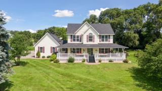 MULTIPLE OFFERS RECIEVED. PLEASE SUBMIT OFFERS BY 3PM, MONDAY MARCH 3RD. Welcome to beautiful Afton Minnesota. This one owner home was custom built in 2001 and sits on 19.1 acres. This is a great opportunity to create your hobby farm. The picturesque home is well positioned on the lot with great views from the 75 feet of wrap around deck and secluded privacy in back. The garden area includes 6 raised beds and a shed with room to expand. The home has been well cared for with a newer roof (3 years), furnace (4 years), water heater (3 years), carpet and recently painted inside. As you enter, you’ll notice the beautiful hickory hardwood floors and the whole house freshly painted. The main floor features a formal dining room, a den or potential conversion to a main floor 5th bedroom, and an open concept kitchen and living room. The light filled kitchen has hickory cabinets with under mount lighting, granite countertops and peninsula with an overhang for comfortable seating for 3. There is a pantry with ample storage and a built-in desk. The cozy living room has a gas burning fireplace and sliding glass door that walks out to the huge deck with a pergola. This private backyard oasis has beautiful flower gardens and shrubs and is surrounded by trees and abundant wildlife. The upper level has a spacious open hallway with 3 bedrooms on one floor. Two bedrooms share the full bathroom, and your primary bedroom includes a large walk-in closet and private ensuite bathroom with soaking tub. The basement has a second living room with an electric fireplace, a fourth bedroom, a flex space, a large storage room and a 3/4 bathroom. The land is zoned agricultural. Horses, goats, chickens, sheep and more are allowed You can build 2 more outbuildings up to 2,500 sq ft if you remove one of the sheds.