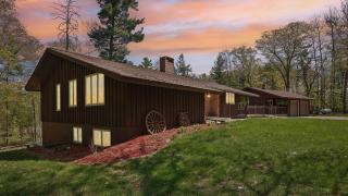 Tucked away on over 5 peaceful acres, this private oasis offers serene pond views, a heated in-ground pool, and generous patio and deck space perfect for relaxing or entertaining. The home is filled with natural light, warm wood floors, and a cozy brick fireplace. The kitchen is both functional and inviting, featuring updated counters, abundant storage, and loads of workspace. With three bathrooms and four spacious bedrooms—two up, two down—there’s room and flexibility for everyone. The asphalt circle drive leads to a 2+ car detached garage with workshop space, plus a garden shed for all your extras. Surrounded by wildlife and lovingly maintained, this home blends comfort, privacy, and practicality.