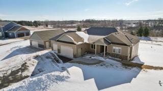 This beautifully built 4bd/4ba walkout rambler is located in a quaint and respected neighborhood. Resting on over 2 acres the large south facing windows provide for incredible sunshine filled rooms. Country quiet, private well & septic, only a mile to the freeway for easy commute and many shopping conveniences nearby. Completely finished & ready for you to just move in & enjoy. Main floor offers bright open spaces w incredible south facing views. Floor to ceiling fireplace w blt ins on either side. Spacious Owners suite w / private bth - wlk in shower, seperate soaking tub & huge walk in closet. The 2nd main flr bdrm would also be perfect used as an office. Kitchen is a chefs dream w huge island & upgraded appliances. All living facilities on main level. LL offers a 2nd owners suite w private bath, 4th br, Rough in wet bar area, and large fam room that walks out to a beautiful back yard. Retaining wall boulders, irrigation. Heated & Insulsated 3 car garage, w flr drain. Add ons this last year include: 35 x 60 oversized heated 2 car garage, beautiful maintenance free deck, Sunsetter awnings for deck shade, poured cement patio at walkout. A MUST SEE!