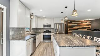 Get ready to fall in love, the minute you see this beautifully renovated 2 story, you will want to call this one home. This custom kitchen is stunning with new stainless steel appliances, updated electrical and lighting, and an abundance of storage in your beautiful new white cabinetry. The show stopper is the oversized 8x4 foot island featuring a stunning leathered granite top. So much space to chef it up, entertain and enjoy your family & friends. Every detail in this kitchen is custom and so thoughtfully curated, it is an absolute dream space! The main level bathroom has been tastefully renovated as well. You will also find 3 bedrooms on this level with original hard-wood floors. The lower level offers a fabulous updated family room with fresh paint on the newly sheet-rocked walls, a knockdown ceiling, and a cozy brick wood-burning fireplace creating ambiance like crazy, it's the perfect space to get cozy. Step out to the backyard where the summer fun will never end with the in-ground pool with a 10 foot deep end, perfect for swimming, floating, cooling off & hosting gatherings on the surrounding patio! With an oversized fenced yard, this space is an oasis! All of this is simply minutes from downtown Stillwater and the river activities. You have access to scenic hiking and biking trails, nature, and all the charm Stillwater area has to offer.