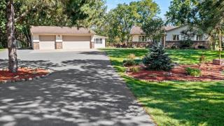 Welcome to this stunning, remodeled walk-out rambler on 3 manicured, private acres with access to a picturesque shared pond. This home looks like brand new construction and has been meticulously updated. As you enter, you're greeted by a bright, open floor plan with dark LVP flooring, a spacious living room, and a high-end kitchen with large island, SS appliances, granite counters, stone backsplash, and dinette area with views of the gorgeous deck and back yard. A spacious primary bedroom with a private deck and double closets, 2 additional bedrooms, and a large full bath with double sinks complete the main level. The walk-out lower level features a gorgeous wall-to-wall brick fireplaced family room, rec room/billiards area, a full wet bar, 4th bedroom, and tiled 3/4 bath! The wow-factor continues outside on the beautiful, large stamped concrete patio and deck overlooking the greenery and nature, plus there's a 3-season porch attached to the garage for more outdoor enjoyment! The 3-car detached garage is insulated and heated, perfect for a workshop, plus a storage shed. This is truly a special home, ready to be loved by the next owner as much as the current owners have loved it for the past 21 years.