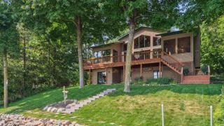 132 feet of private shoreline on the serene Knife Lake in Knife Lake Township, Mora, Minnesota. This breathtaking 4,300-square-foot home, with 3,829 finished square feet, was custom-built in 2003 and offers everything you need for luxurious lakefront living. You’ll be captivated by the two-story vaulted wood ceilings that bring warmth and charm to the space. The heart of the home is a striking floor-to-ceiling stone fireplace that sets the tone for cozy evenings with family and friends. The open-concept layout flows seamlessly, inviting natural light and showcasing those incredible long views of Knife Lake from every room. Step outside onto the expansive deck where you can take in the tranquil beauty of the lake—perfect for morning coffee or entertaining guests. Knife lake is over 1200 acres, providing plenty of space for water activities, including boating, fishing, and swimming. Knife Lake itself is known for its recreational offerings and is a top fishing destination in Kanabec County. Anglers will love catching walleye, northern pike, crappie, and panfish. Beyond the lake, enjoy the quiet community of Knife Lake Township, just 2 hours from the Twin Cities, making it an ideal escape for weekend getaways or year-round living. Other highlights of this home include identical suites upstairs with their own private baths with walk-in showers and a gourmet kitchen with custom finishes, wet bar and billiards room, Two garages with over 1100 square feet of space with a shed to boot, screened in porch, fire pit patio, vegetable and flower gardens and so much more. The craftsmanship and attention to detail throughout the home make it a true standout, offering a perfect blend of rustic elegance and modern comfort. Don’t miss this opportunity to own a piece of Minnesota’s lake country. Whether you’re looking for a family home or a peaceful retreat, this property on Knife Lake has everything you need to live the lake life you’ve always dreamed of. Come experience the magic of Knife Lake, where every day feels like a vacation.
