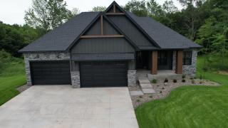 Come explore our newest Walkout Rambler, The Executive Cascade, enjoy views from the sunroom of a spacious wooded acreage lot that backs up to a wildlife area with about 1 1/2 miles to the nearest home from the back of the property line. This home is loaded with features including 4 generous bedrooms and 3 baths offering ample space for family and guests. The master bath offers heated floors and a luxurious walk-in ceramic shower for a spa-like experience. A dedicated home office provides a perfect space for remote work, while the exercise room caters to your fitness needs. The kitchen is a chef's dream, complete with white enamel cabinetry, white Ash accents, solid surface countertops, a double tech oven, a large conduction cooktop, and a convenient pot filler. Additional kitchen highlights include spice racks and a large center island, perfect for meal prep or entertaining. Outdoor living is enhanced by a lower-level concrete patio featuring a fully vented Blackstone grill, roll-up screens, and infrared heaters ensuring comfort year-round. Also has a fireplace and set up for a full size flat screen for watching movies or sports. There is a walk up bar just inside the patio door in the basement. It is a fantastic combination, will feel almost like a sports bar. Oversized 6 car garage is 40' deep with 10' doors for all the toys.