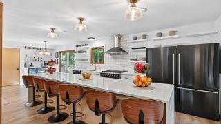 Nestled on a quiet cul-de-sac with a wooded backyard, this spacious 5BR/4BA home combines comfort and versatility. The main level boasts a private primary suite with a spa-like bath and an over-the-top walk-in closet, plus a second bedroom—perfect for guests or a home office. The fully remodeled kitchen impresses with a huge center island, double fridge, and wine bar, flowing seamlessly into a large maintenance-free deck. The walkout lower level adds three more bedrooms, a massive bonus room with backyard access, and a sauna. Recent updates include new low-maintenance siding and a brand-new roof. Perfect for multi-generational living, work-from-home needs, or entertaining. Just 1.5 blocks from Medicine Lake with trails, dining, and shopping nearby—this home is a true find for space, privacy, and flexibility. Furniture available for purchase.