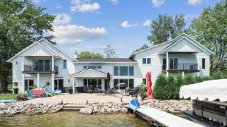 The home features six spacious bedrooms and five bathrooms, including a unique semi-private guest quarters located above the garage. This additional living space includes three bedrooms, two bathrooms, a separate living room, kitchen, and a private terrace/deck with breathtaking lake views—perfect for guests or multigenerational living.