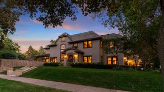 The home’s sophisticated exterior enhances its stately presence, perfectly complementing its historic charm while overlooking picturesque Lake Harriet. Inside, a dramatic staircase with a vintage leaded-glass window serves as a striking focal point, setting the stage for the elegance found throughout. One of the many show-stopping features is the newly added private pool—an exclusive retreat framed by lush landscaping and a covered porch, perfect for outdoor relaxation.