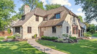 This classic 1938 two-story home sits on a beautifully landscaped corner lot and features 4 bedrooms, a rare 3-car garage, and spacious living across all three levels. Rich in character, the home includes coved ceilings, cherry woodwork, wrought iron railings, slate flooring, and two fireplaces. The main and upper levels feature newly installed 4 inch white oak hardwood floors throughout. The upper level offers three bedrooms, including a primary suite with a private ¾ bath, while the main level includes an additional bedroom or office. A bright 3-season porch overlooks the private terrace, and the lower level features a large family room with fireplace and egress windows. With abundant storage throughout—including a 9x4 cedar-lined walk-in closet—this home offers a perfect blend of space, charm, and functionality.